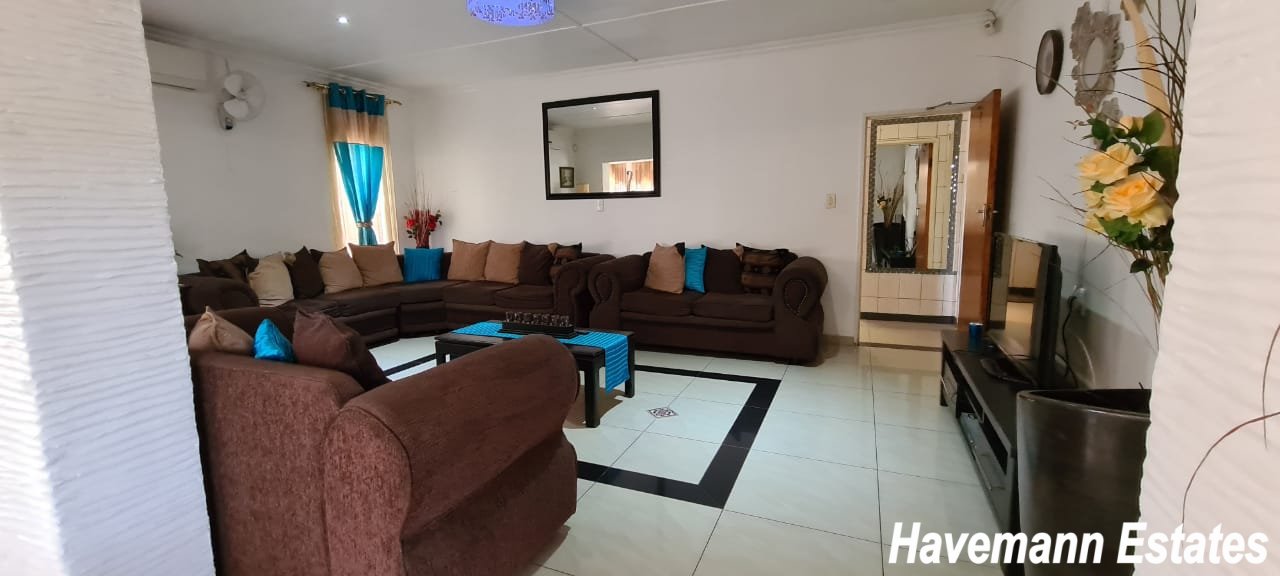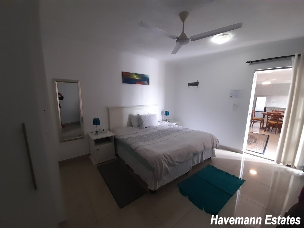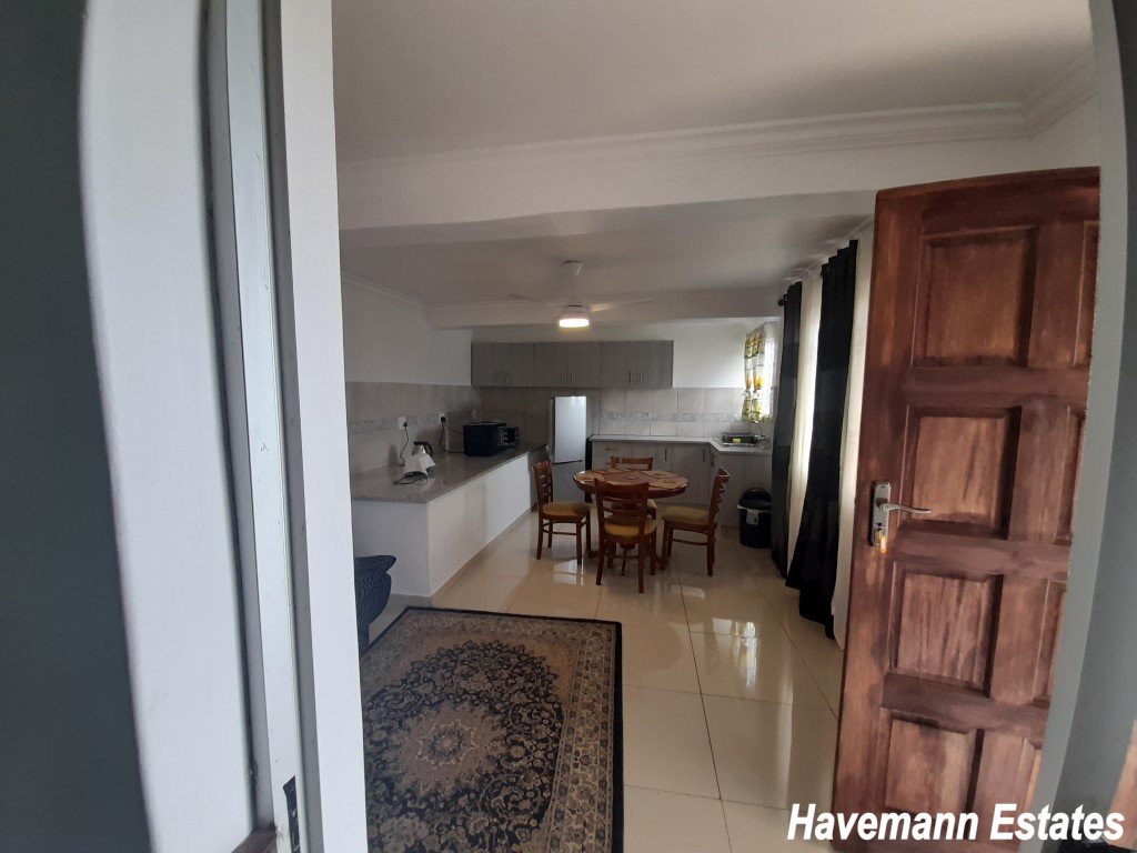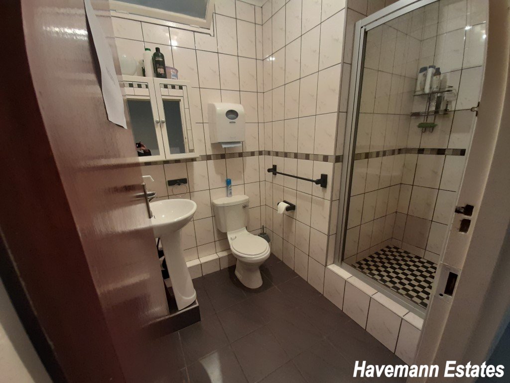 The main house has 4 bedrooms, 3 bathrooms, and a spacious granite kitchen, and a patio with seating. There is staff accommodation on site for the housekeeper. The main house is not let at the moment but used by the manager and the owner. This can be let out as additional rooms with separate toilets and bathrooms. All outside lights are on solar panels which helps during load shedding. There is CCTV to monitor the public areas and the car park. There is secure parking for up to 8 cars.